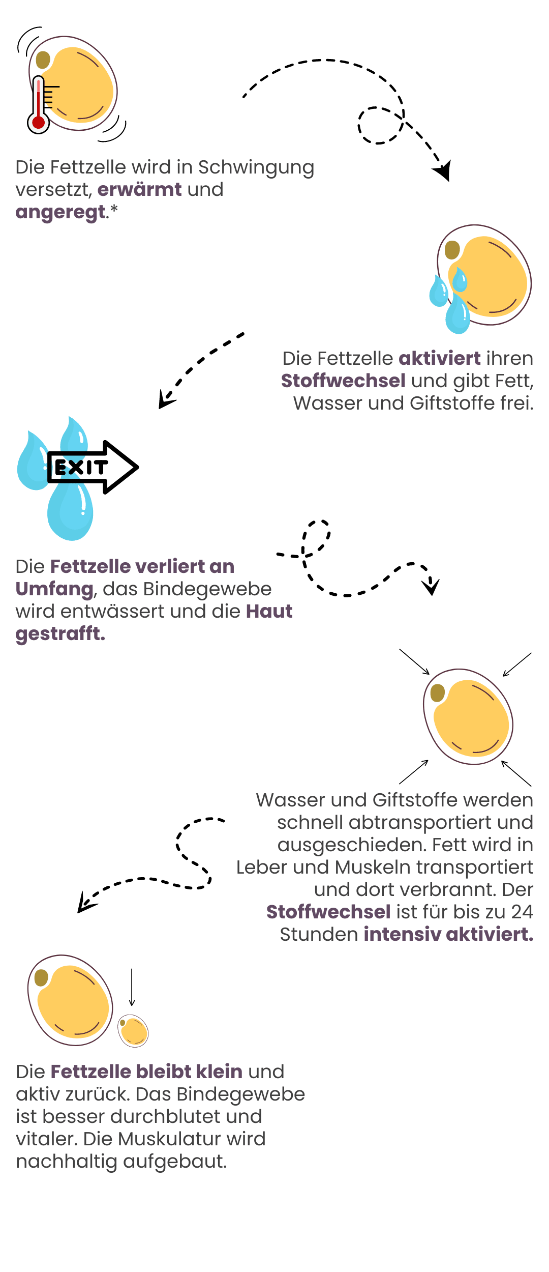 Unsere einzigartige Methode führt dich in kurzer Zeit zu deinem Traum-Body. Bereits nach der ersten Behandlung verlierst du 2-5cm deines Körperumfangs. Du glaubst uns nicht? Kein Problem! Sollte dieses Ergebnis nicht eintreffen, brauchst du die Probebehandlung nicht zu bezahlen. Somit besteht für dich absolut kein Risiko.